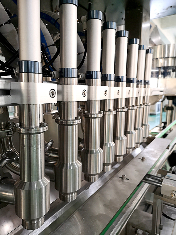 該機(jī)為8頭伺服式醬料灌(guàn)裝機,香蕉视频污版公司自主研發,擁有技術及外觀專利(lì)證書,是我司針對(duì)醬料等粘(zhān)稠產(chǎn)品的包裝、灌裝設計的一種(zhǒng)新(xīn)型包裝機設備,結構合理穩定(dìng),不(bú)易損壞,工作性能好,氣動部(bù)分均采用德國FESTO和(hé)日本SMC的(de)氣動元件;灌裝量和灌裝速度均可任意調節,精(jīng)度高;氣(qì)缸(gāng)的(de)活塞和缸體均由聚四氟乙烯和316L不鏽鋼材料(liào)製成,符(fú)合GMP要求;灌裝悶頭采用防(fáng)滴漏、防拉絲灌裝裝置,是(shì)辣椒醬、豆豉醬、辣椒(jiāo)醬等顆粒醬料灌裝的很(hěn)佳(jiā)灌(guàn)裝生產線。