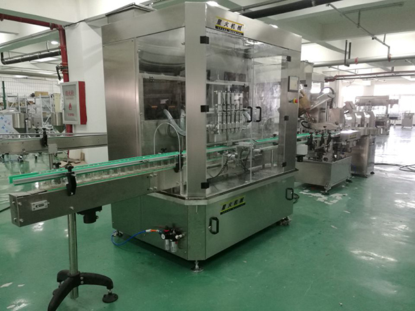 3、工作效率高,可搭配(pèi)理瓶機、洗瓶機(jī)、直線旋(xuán)蓋(gài)機(jī)、玻璃瓶貼標機(jī)、自動噴碼機、收瓶機等組成一條自動化灌裝生產線;