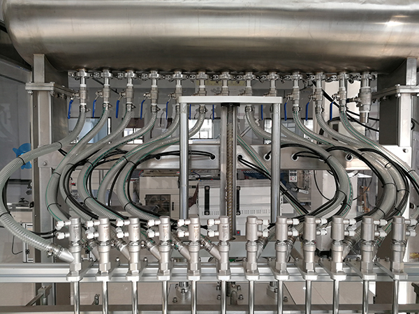 設備灌裝采用固定流道參數,控製灌裝時間來(lái)實現不同計量的灌裝。自動香油灌裝機氣動閥灌(guàn)裝的準(zhǔn)確時間可設定到0.01秒,能使計量準確度控製在±1%誤差範圍,減少不必要(yào)的物料損耗,提高用(yòng)戶經濟效益。醬油醋灌裝機設備每(měi)個灌(guàn)裝(zhuāng)頭的計量可以進行單(dān)獨調整,以實(shí)現灌裝計量的一致。本機設定了進瓶技術程序、無瓶、計數不(bú)到位不灌裝(zhuāng),隻有當計數器記錄到的瓶數與設定的灌裝瓶數一致時才開始灌裝。自動香油灌(guàn)裝機灌(guàn)裝(zhuāng)量的多少,可以(yǐ)進行初調(diào)到所需灌裝量時,再進行(háng)微調,即可得到理想的灌裝計量精(jīng)度。