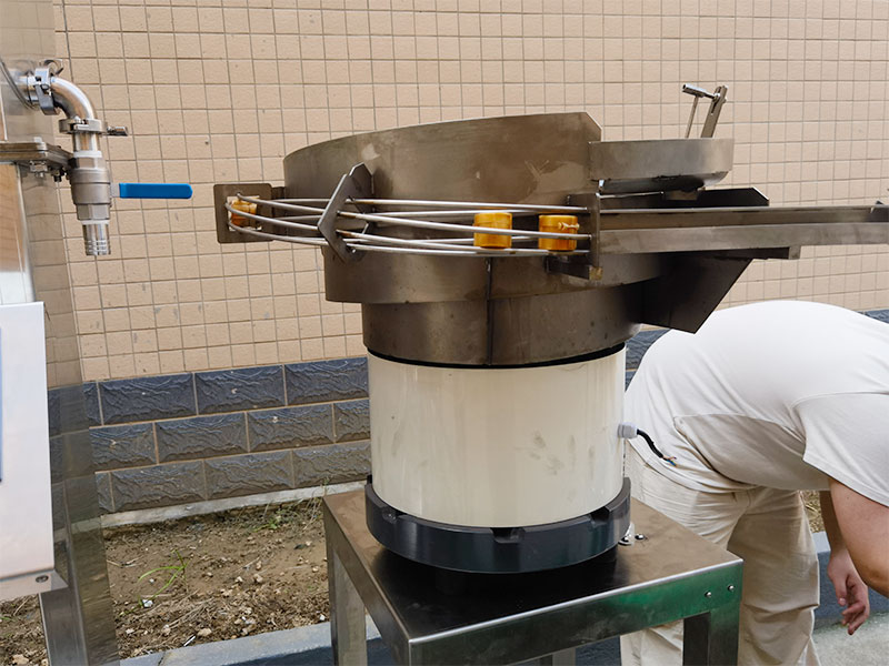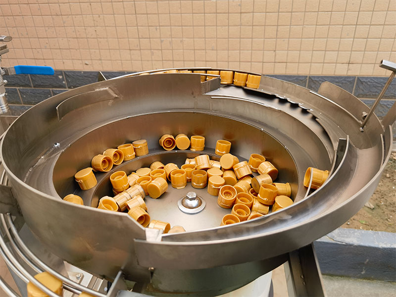 1、自動理蓋,通過震動(dòng)器(qì),將雜亂無序的(de)瓶(píng)蓋自動整(zhěng)理為統一方向(xiàng),確保供蓋的順暢。